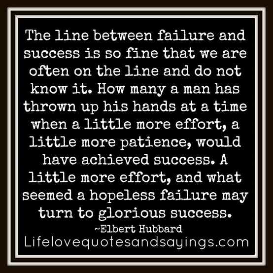 Failure is an amazing thing to look and think upon. It differentiates you from those who haven’t even tried what you have failed in. You can read the last line again to console yourself. You can lie down, maybe masturbate, or just watch the LOTR trilogy take your mind off the failures and rejuvenate yourself so you can focus again on “trying”.