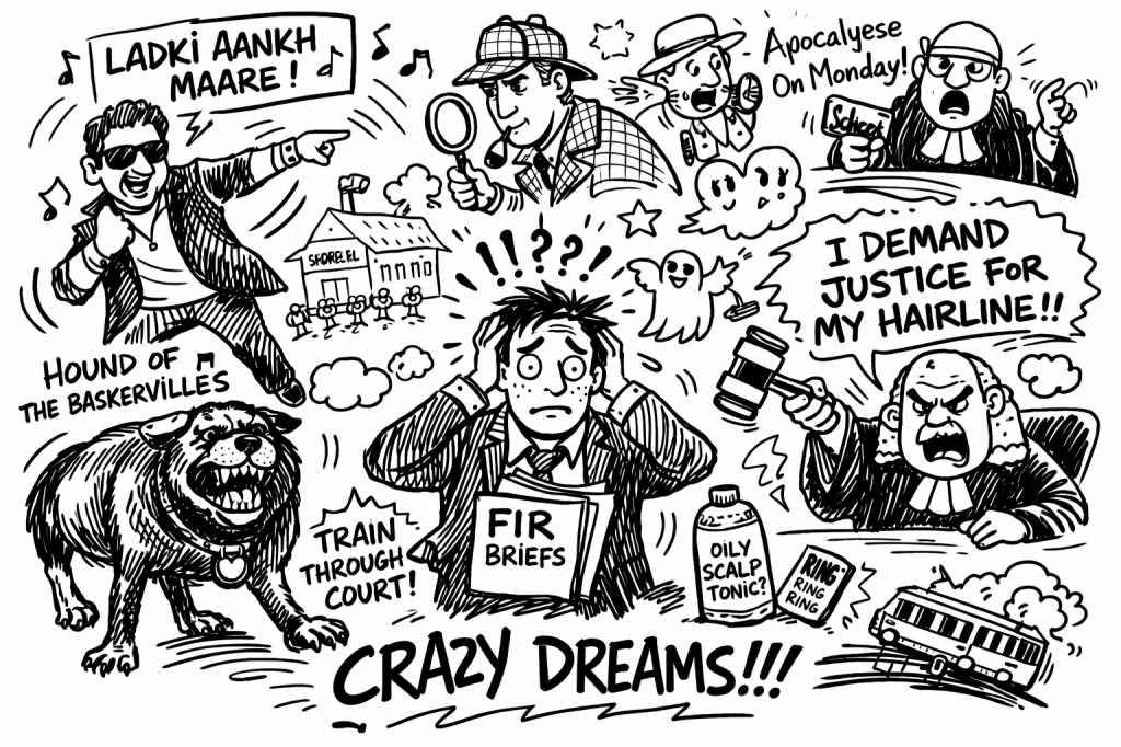 I am always anxious in dreams. Always on my toes. Always trying to solve something urgent and fundamentally absurd. One moment I am chasing the Hound of the Baskervilles through what appears to be old Noida mixed with Victorian England, and just when I am about to uncover the mystery, Arshad Warsi appears from nowhere, in full energy, dancing to Ladki Aankh Maare as if this is the most natural transition in the world.
