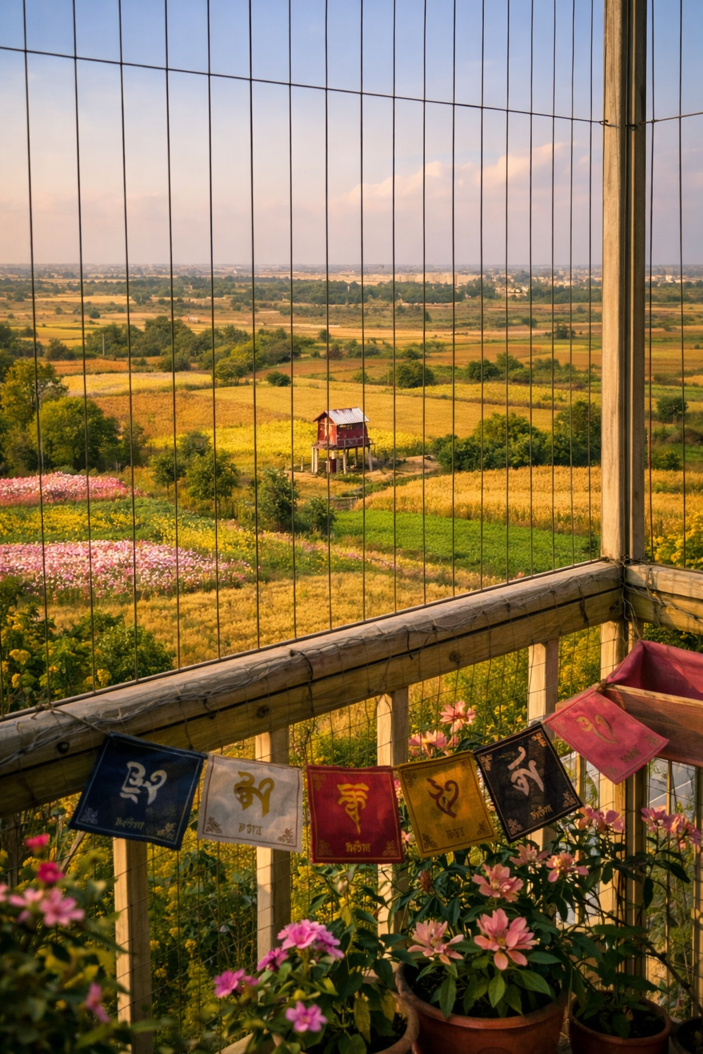 From the 16th floor of my balcony, I can see a small machan standing quietly between the fields.